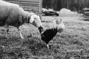 Schafe, Kühe, Bienen, Ziegen, Enten, Hühner und Katzen.